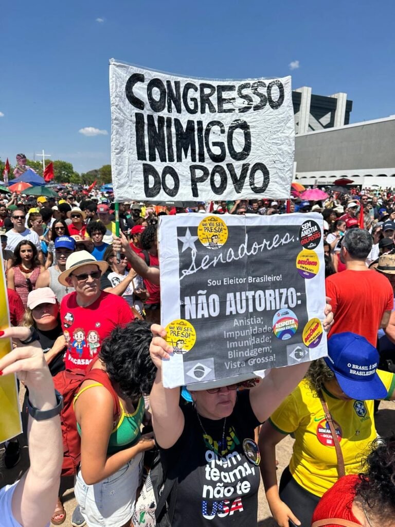 Rio de Janeiro, São Paulo, Salvador, Curitiba, Belo Horizonte, Curitiba, Florianópolis, Goiânia e Porto Alegre lotaram as ruas contra a vergonhosa PEC da Blindagem, chamada de PEC da Bandidagem, já aprovada na Câmara dos Deputados e em tramitação no Senado Federal, e o Projeto de Lei de Anistia para os golpistas, cuja votação em regime de urgência foi aprovada pelos deputados. Outras capitais também realizaram atos contra a PEC da Blindagem e a anistia, totalizando 19, sem contar inúmeras cidades que aderiram ao dia 21, somando mais de 50.
