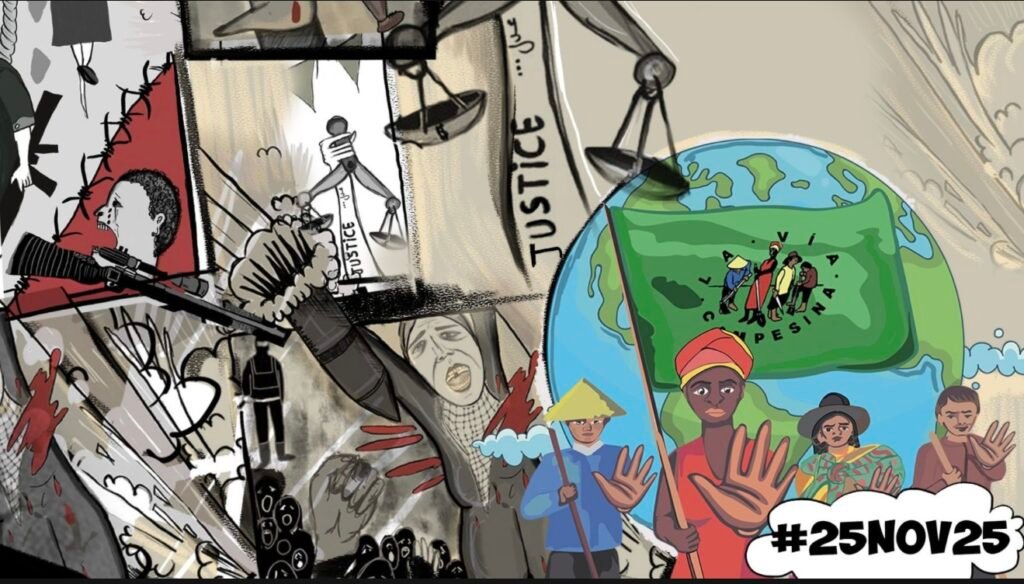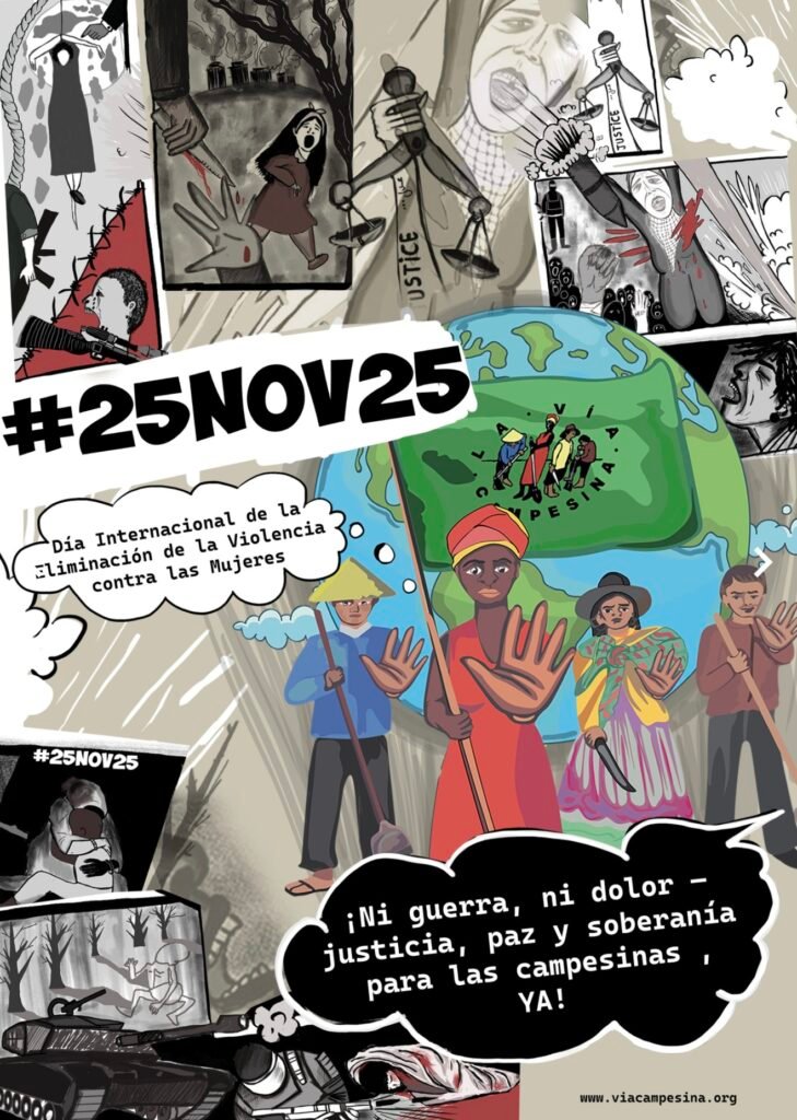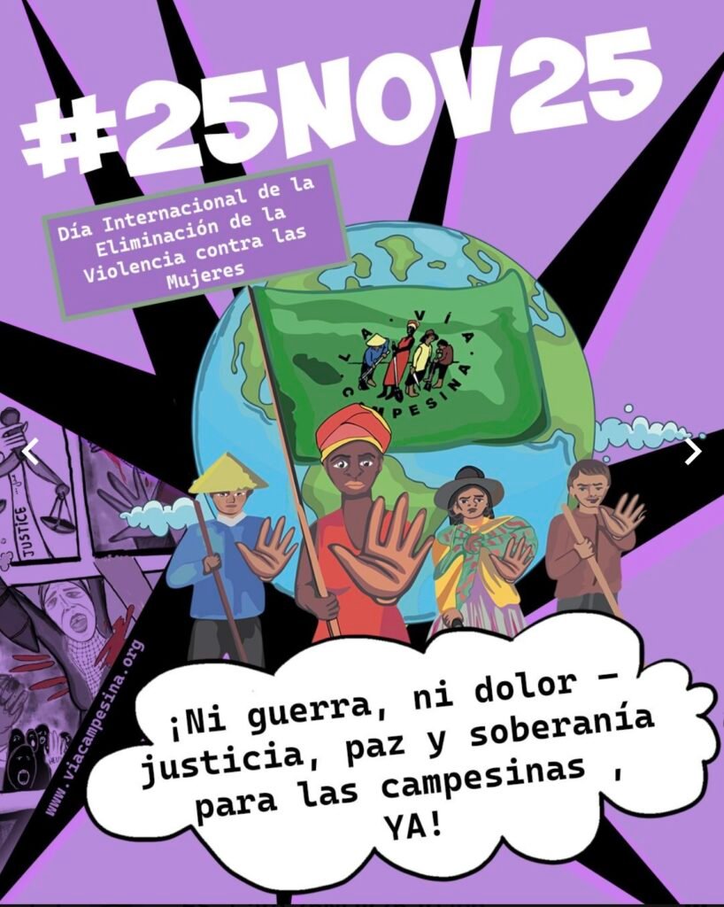 #25Nov25, Chamada à ação: Não à guerra, não à dor — Justiça, paz e soberania para as mulheres camponesas, agora!
