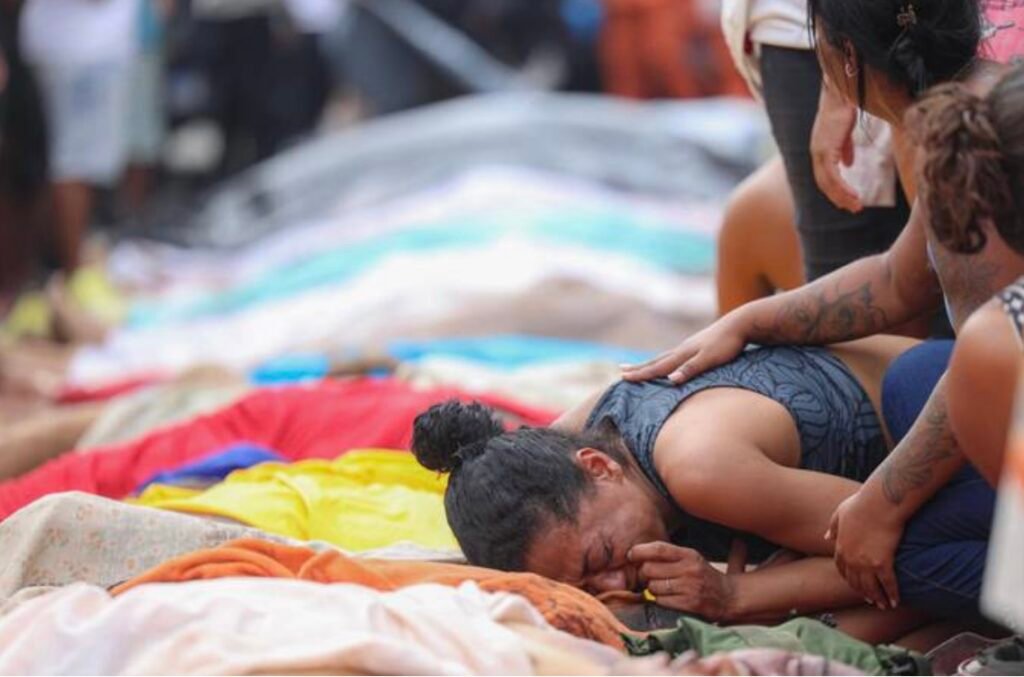 Mulher chora sobre o corpo de uma vítima da chacina no Rio de Janeiro, em mais um episódio da política de extermínio que marca a guerra às drogas nas favelas (Tomas Silva/Agência Brasil)