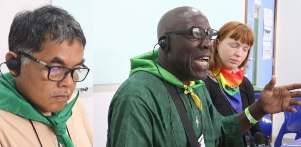 Sofia Moller, da ECVC na Dinamarca, abordou as lutas por terra, território e mar, enfatizando que a terra é fundamental para alcançar a soberania alimentar. Ela alertou contra as “falsas soluções” ligadas à compensação de carbono, que exigem grandes extensões de terra para absorver CO2, resultando na apropriação de terras e oceanos em nome da economia azul ou verde.