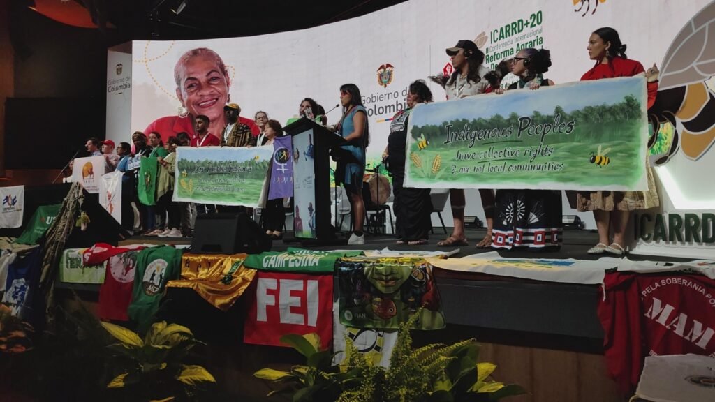 Não podemos aceitar a declaração desta Conferência. Nos próximos meses e anos, sentiremos seus efeitos em nossas comunidades e territórios. No entanto, continuaremos nossa luta e nosso trabalho para garantir que os conceitos que minam os direitos dos Povos Indígenas e de outras comunidades rurais sejam removidos das convenções internacionais. Estamos dispostos a trabalhar com todos os governos para alcançar a plena realização dos direitos humanos e dos direitos dos Povos Indígenas. Conclamamos todos os governos a se engajarem em um diálogo de boa-fé conosco sobre as questões dos Povos Indígenas, os direitos dos povos pescadores e nômades pastoris, os direitos das mulheres e a agroecologia. A reforma agrária, a soberania alimentar e a justiça social, agrária e ambiental só serão alcançadas por meio da luta. Agora retornamos aos nossos lares para organizar nossas comunidades e organizações a fim de travar essa luta pelo futuro de nossos povos e da Mãe Terra.
