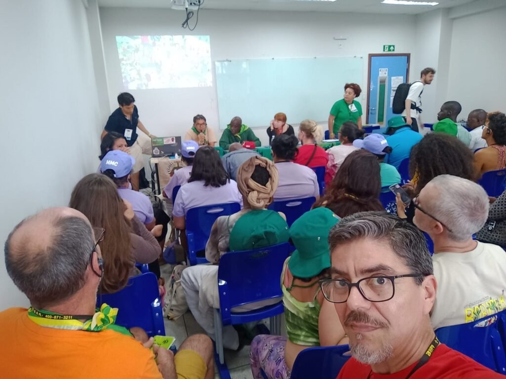 Na quinta-feira, dia 13 de novembro, o Movimento dos Pequenos Agricultores (MPA) participou da Reunião Internacional da Via Campesina sobre a Declaração dos Direitos Camponeses da ONU (UNDROP), representado pelo companheiro Marciano Toledo, durante a Cúpula dos Povos, na COP30, em Belém.