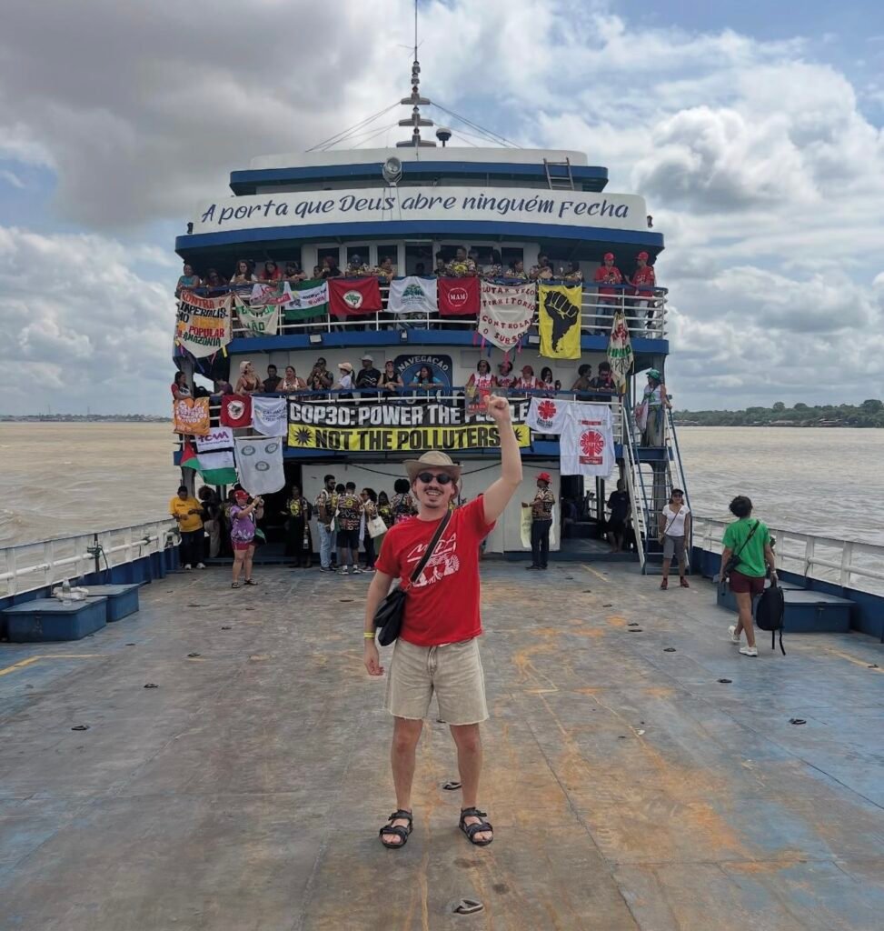 Dirigentes do MPA, devidamente uniformizados, com camisas, bonés e bandeiras, o MPA esteve presente na barqueata às margens do rio Guamá, realizando o trajeto de encontro até a Baía do Guajará. Este ato simboliza nossa denúncia às falsas soluções climáticas e o anúncio de que a verdadeira resposta está nos povos do campo, das águas, das florestas e das periferias — aqueles que resistem e constroem o futuro por meio de práticas coletivas, agroecológicas e ancestrais. Com cerca de 200 embarcações e mais de cinco mil participantes, a barqueata marcou o início das atividades que serão desenvolvidas ao longo dos dias da Cúpula dos Povos.