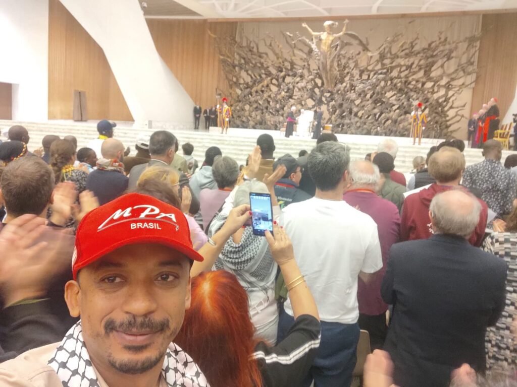 Na manhã desta quinta (23/10/25), eles tiveram encontro com o Papa Leão XIV, marcado como um momento histórico para os Movimentos Populares, que reafirma os clamores das periferias, dos campos e das lutas por dignidade, terra, teto, trabalho e democracia. Este encontro representa a disputa por um projeto de humanidade frente ao avanço do ódio, da guerra, do ultraliberalismo e da degradação ambiental.