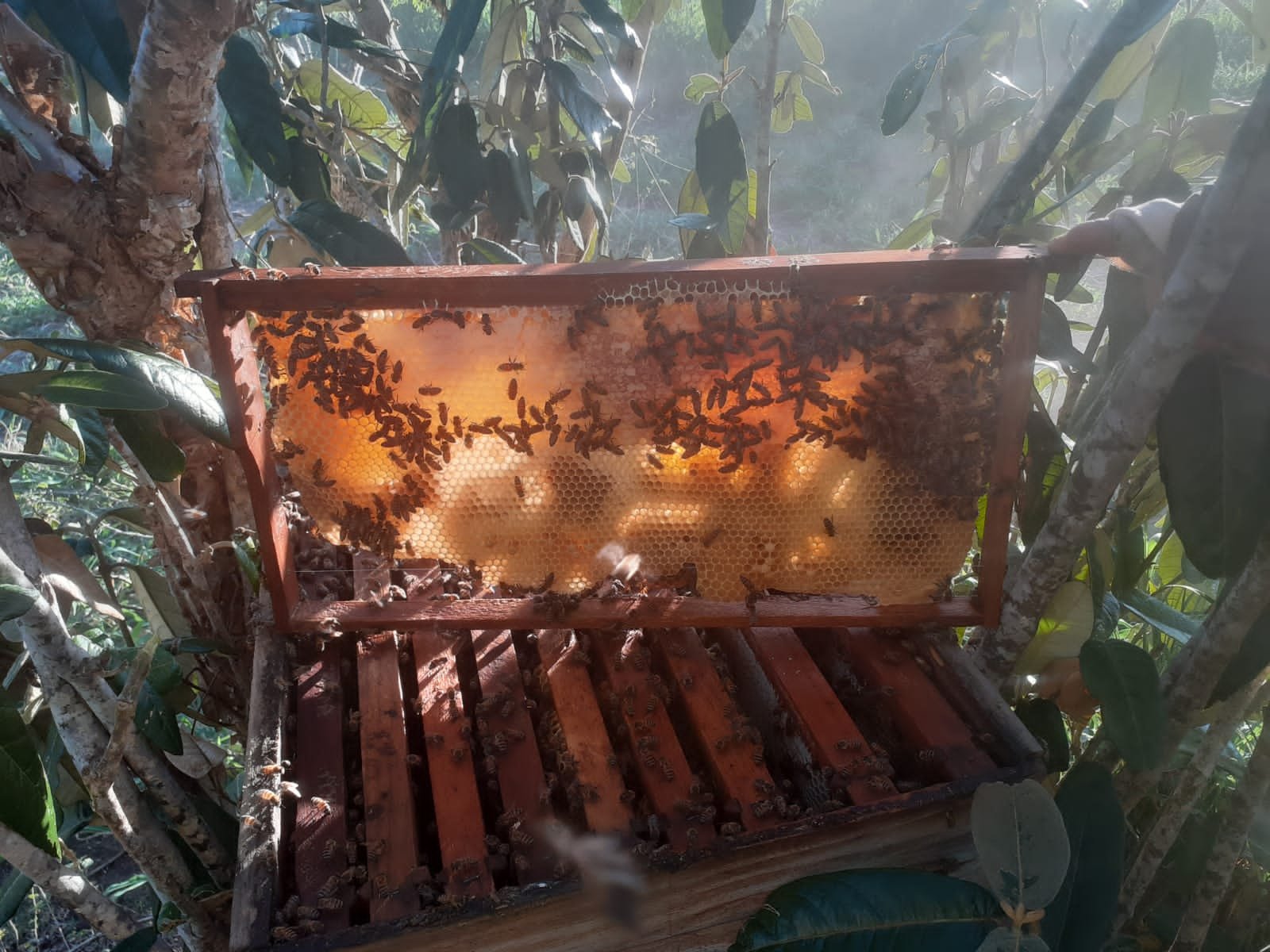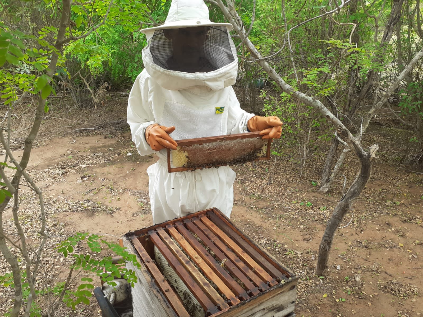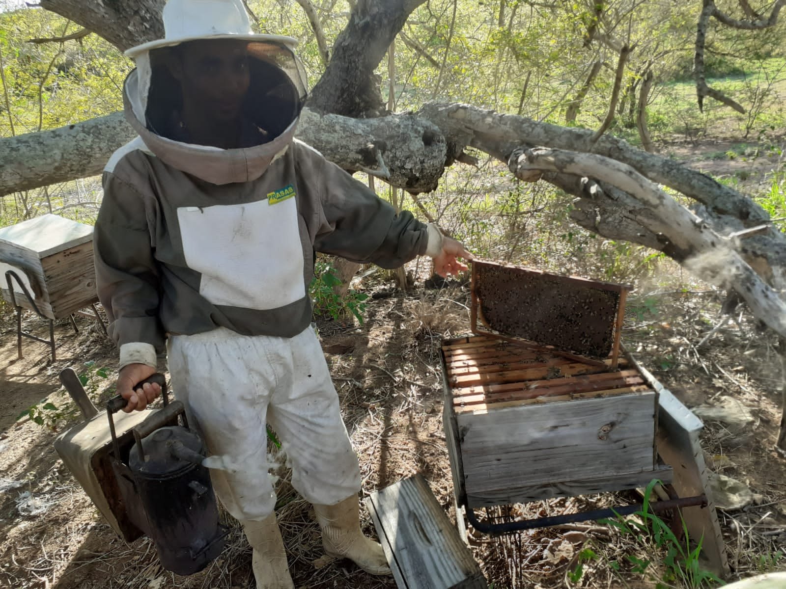 O técnico da Cooperativa Mista de Produção e Comercialização Camponesa da Bahia (CPC BA), Rafael Silva, apresenta que “50% da produção apícula é resultado do manejo e os outros 50% da flora da região, se a gente não realizar todos os manejos não consegue ter um resultado bom”.