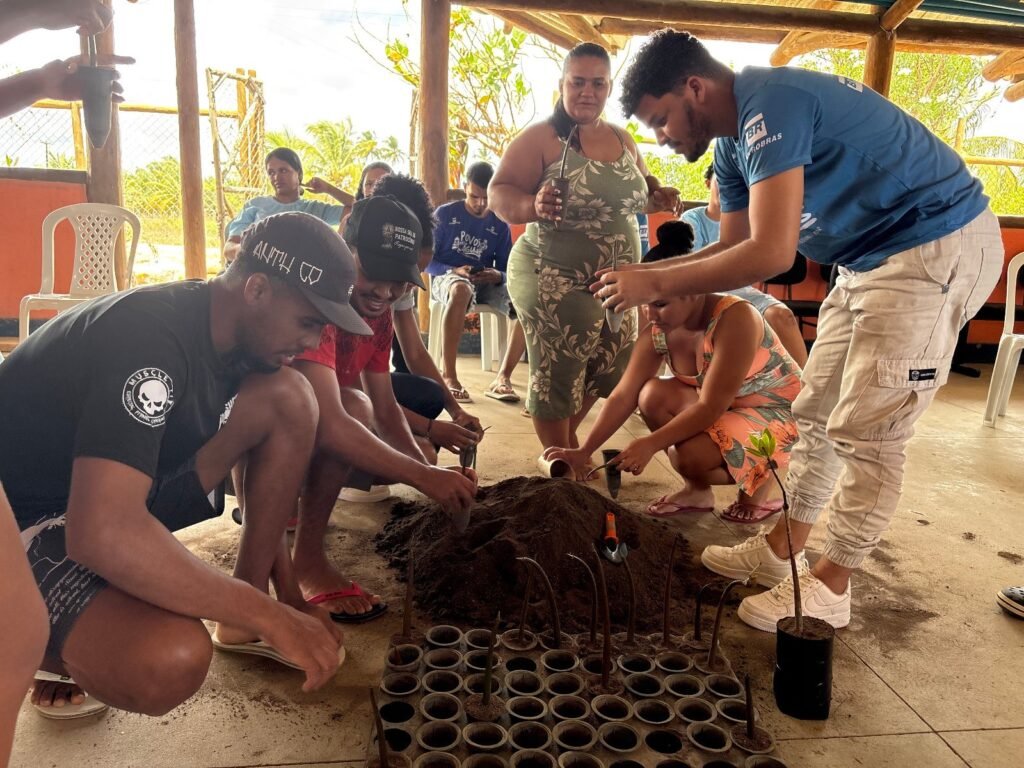 As ações de coleta de propágulos do mangue e a formação em produção de mudas aconteceram no Quilombo Santa Cruz, nos dias 8 e 9 de janeiro de 2026, sendo uma iniciativa que uniu saberes tradicionais, mobilização comunitária e fundamentos técnicos da restauração ecológica.
